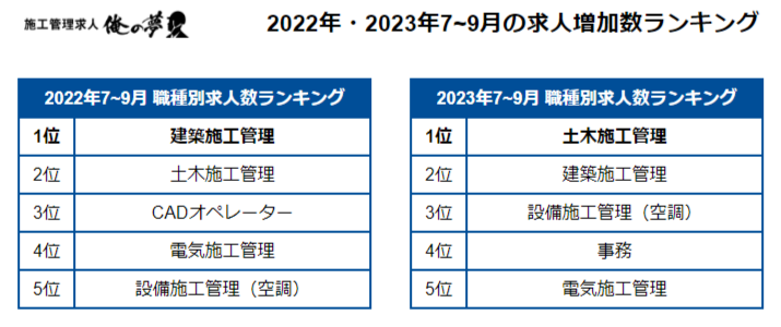 ※参考:【施工管理求人サイトの四半期レポート】施工管理職の求人数が毎月増加(2023年7~9月度)