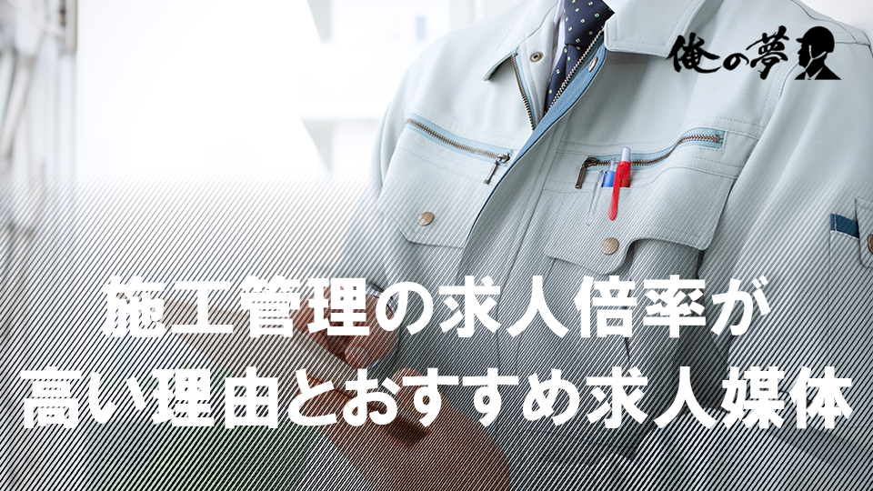 求人倍率の高さからも、施工管理職は全国で求められていると言えます。建築業界の求人を多く掲載しており、給与や勤務地など様々な条件で仕事を検索できる「俺の夢」を利用して、ぜひ自分に合った仕事を見つけてください。